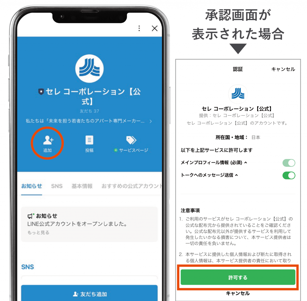 ※承認画⾯が表⽰された際は「許可する」をタップ